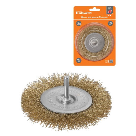 Щетка для дрели "плоская", 100 мм, латунированная витая проволока d 0,3 мм, "Рубин",