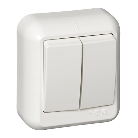 ПРИМА О/У Белый Выключатель 2-клавишный 10А (в сборе) (опт.упак.)