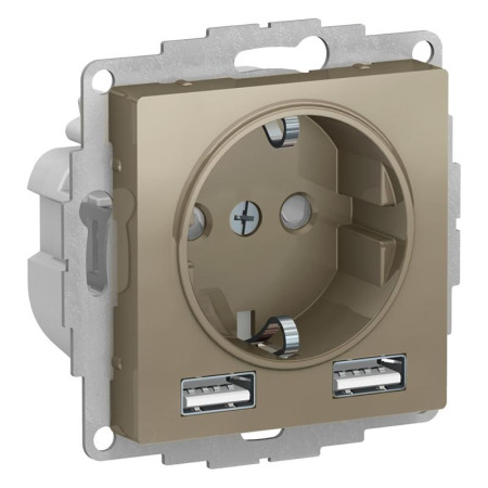AtlasDesign Шампань Розетка 16А c 2 USB A+A, 5В/2,4А, 2х5В/1,2А, механизм