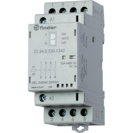 Модульный контактор 4NO 25А контакты AgSnO2 катушка 12В АС/DC ширина 35мм степень защиты IP20