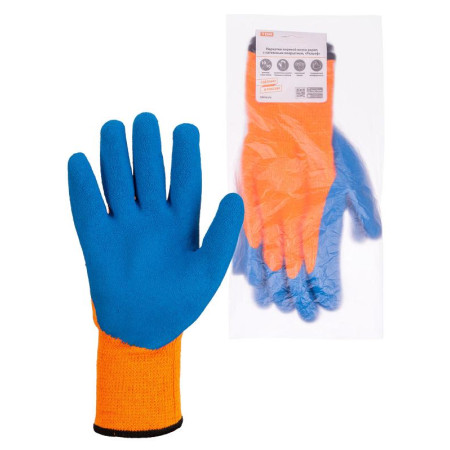 Перчатки плотной вязки акрил с латексным покрытием, "Рельеф", оранж., 10, 10 кл., 125 г, 1 пара,