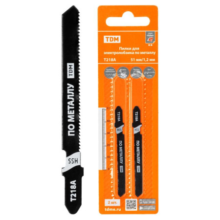 Пилки для электролобзика по металлу, HSS, 51х1,2 мм, криволинейный рез, T218A, 2 шт, "Рубин", TDM