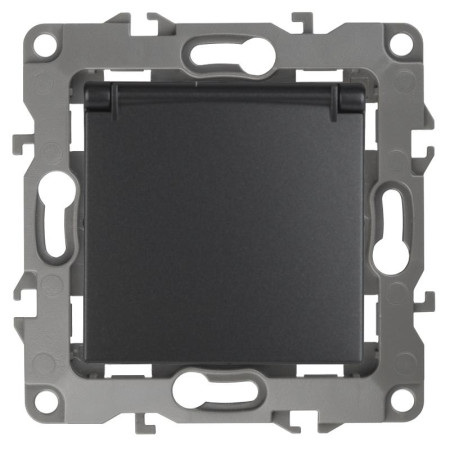 Розетка 12-2103-05 2P+E Schuko со шторками с крышкой, 16АХ-250В, антрацит (10/100/2500)