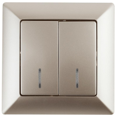 4-105-04 Intro Выключатель двойной с подсветкой, 10А-250В, СУ, Solo, шампань