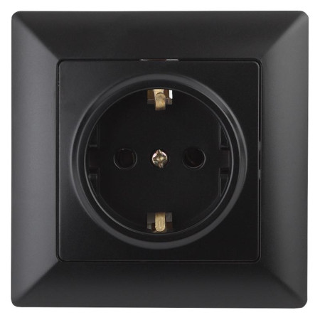 Розетка Intro Solo 4-206-05 с заземлением 2P+E Schuko со шторками, 16А-250В, IP20, СУ, антрацит