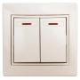 1-105-02 Intro Выключатель двойной с подсветкой, 10А-250В, IP20, СУ, Plano, сл.кость