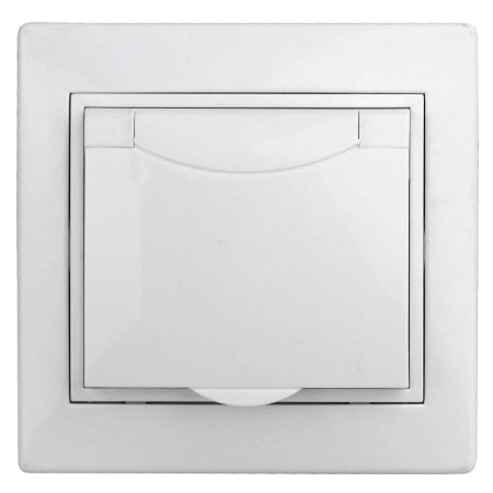 1Э-207-01 Intro Розетка 2P+E Schuko с крышкой штор., 16А-250В, СУ, б.л., Plano, белый