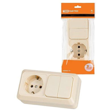 Блок комбинированный выкл. 2-кл. 10А + розетка 2П+З 16А 250В БКВР IP20 сл. кость "Ладога"