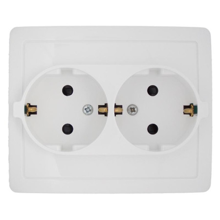 Simon 15 Белый Розетка двойная с/з Schuko с защитными шторками, винт. зажим, 16А 250В
