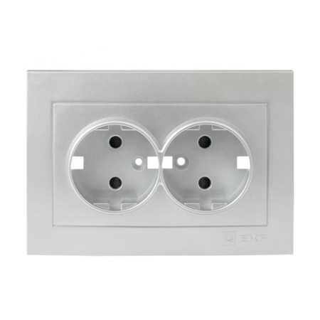 Валенсия лицевая панель розетки 2-местной с/з 16А сталь с защ. штор. EKF PROxima