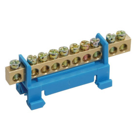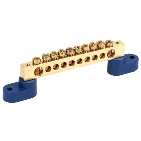 Шина «N» нулевая 8х12 мм на двух угловых синих изоляторах 6 групп