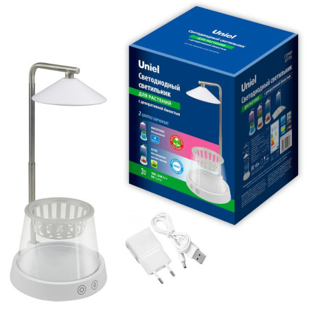 Светильник-подставка светодиодный для растений с таймером декор емк 4000К ULT-P36-3W/4000K+SPSB IP40 WHITE cпектр для рассады