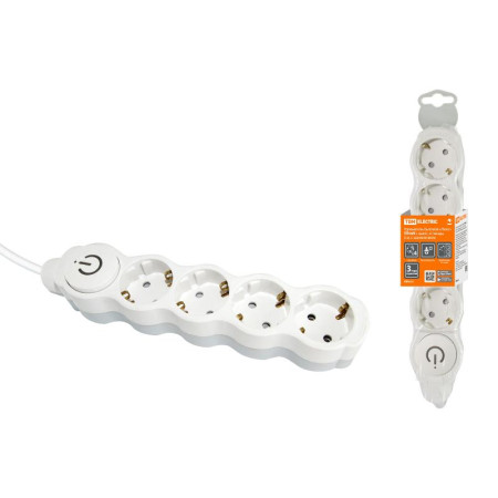 Удлинитель бытовой "Люкс" УЛ04В выкл, 4 гнезда, 3м, с/з, с з/ш, ПВС 3х1мм2 16А/250В бело-серый