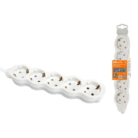 Удлинитель бытовой "Люкс" УЛ05 5 гнезд, 5м, с/з, с з/ш, ПВС 3х1мм2 16А/250В бело-серый